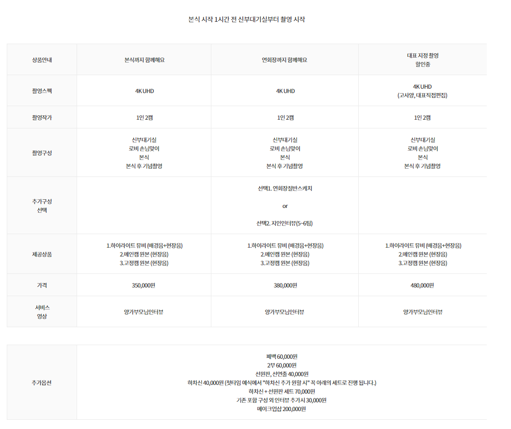 "본식과 함께해요" 상품으로 진행